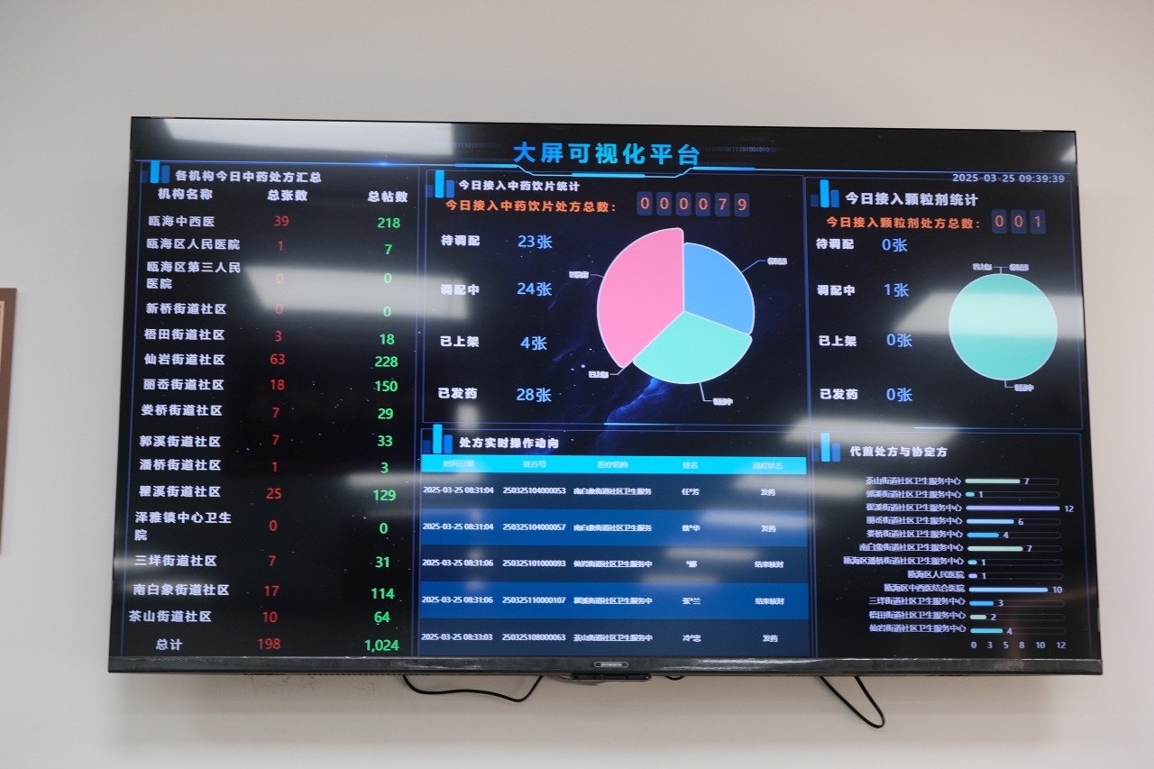 “我們充分應用互聯網、物聯網與大數據技術,建立起一套輻射醫療聯合體范圍內的中醫藥藥事服務生態系統。智慧共享中藥房管理平臺是核心,能查詢中醫開方、電子處方傳輸、煎藥單賦碼到浸泡煎煮、包裝出藥、分單配送等環節,‘一方一碼’全過程可追溯。”桂約向記者展示著平臺界面,上面實時更新著處方狀態,藥品比對、調配單管理、調配中心數據分析等信息也都一覽無余。