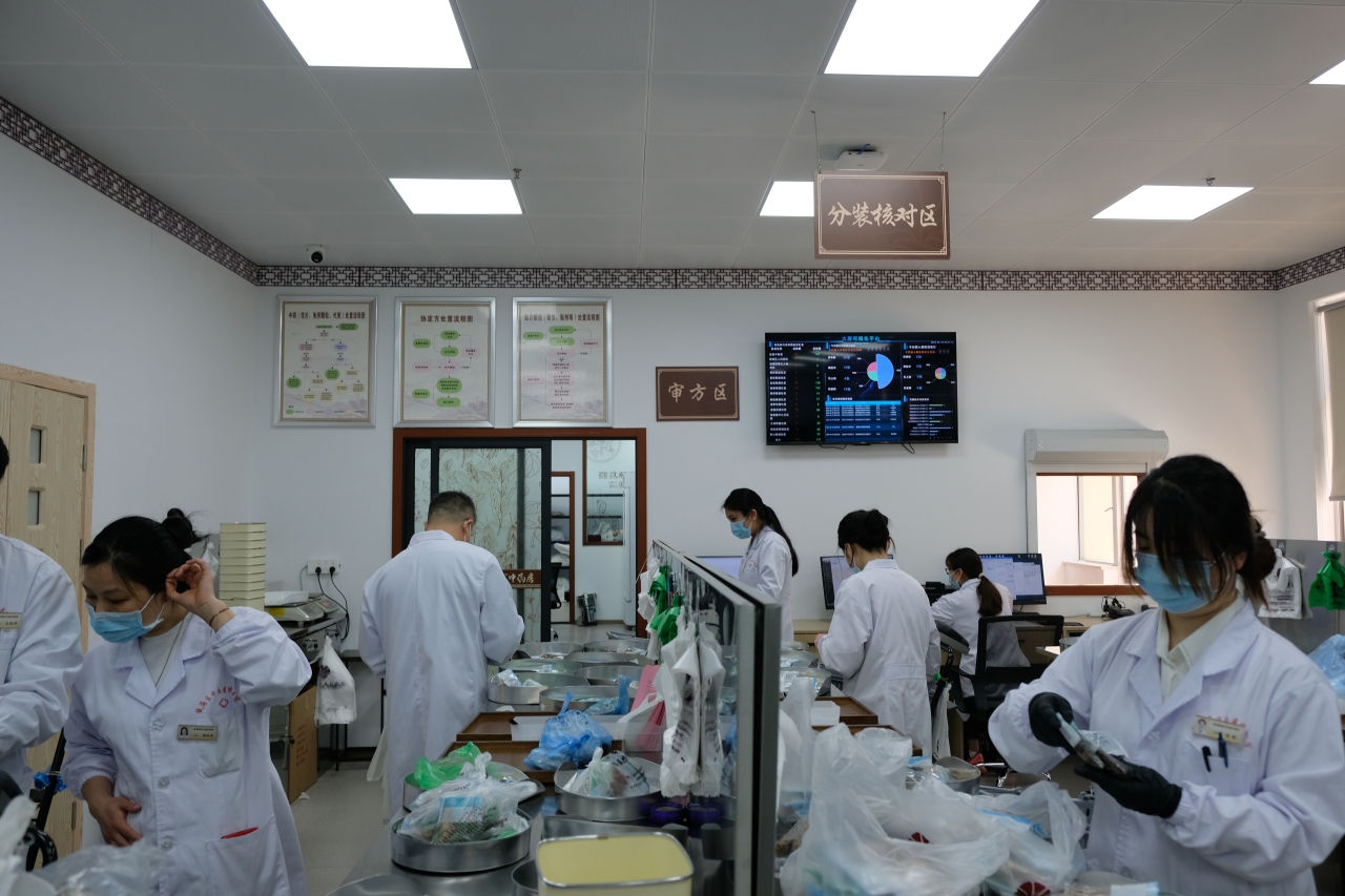基層衛生服務中心、鄉鎮衛生院等普遍存在中醫藥專業人員短缺、中藥飲片品種少、管理成本高等難題。共享中藥房成立后,取消了基層醫療單位原有的中藥房,并集中基層單位的20余位中藥技術人員,組成專業團隊,開展統一采購、統一質控、統一審方、統一發藥、統一配送,實現中醫藥各環節的標準化、規范化管理,確保藥品質量和用藥安全,尤其對特殊人群用藥、超量用藥等嚴格把關。??