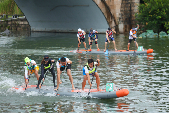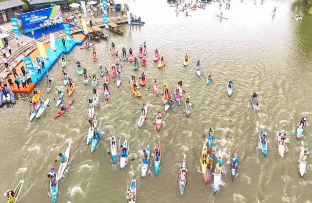 7月28日,“2025溫州三垟濕地首屆槳板邀請賽”圓滿落幕。賽事設置男子個人長距離6公里賽、女子個人長距離6公里賽以及龍板(4人)200米繞標賽項目。來自全國各地的151名槳板愛好者齊聚,其中男子個人6公里長距離賽105人,女子個人6公里長距離賽46人,龍板團體賽共15支隊伍,他們在三垟濕地縱橫交織的水網間劈波斬浪,以槳為筆,在澄澈水面繪就熱血與激情的水上運動篇章。