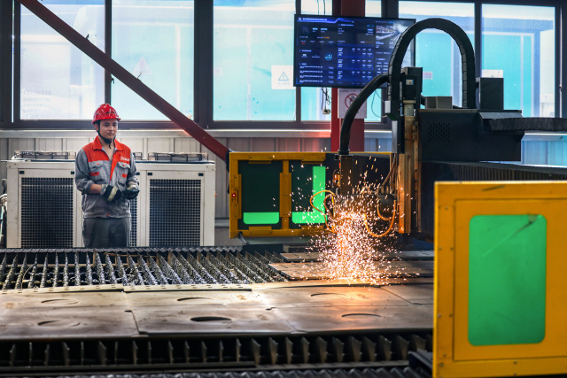 設定參數,輕觸啟動鍵,設備隨即高效運轉。從激光切割到自動焊接,各環節工序在數字化指令下有條不紊。這是記者近日在順隆鋼構生產車間看到的鋼結構制造場景。