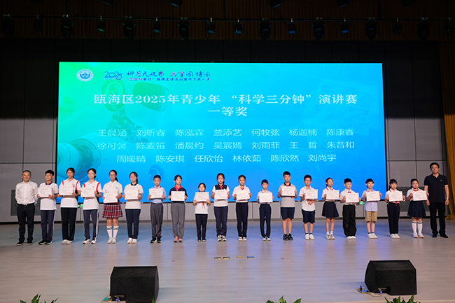 活動在充滿未來感的科技舞蹈《AI視界》中拉開帷幕,同學(xué)們用舞姿傳遞著科學(xué)的魅力與青春的激情,瞬間點燃現(xiàn)場的熱情。活動對“迎園博·添份綠”甌海區(qū)家庭園藝種植大賽優(yōu)秀家庭以及青少年“科學(xué)3分鐘”演講比賽獲一等獎優(yōu)秀代表進行表彰。“科學(xué)三分鐘”和“家庭實驗室”獲獎代表分別發(fā)表演講,分享自己的科學(xué)故事,將科學(xué)知識背后的探索精神傳遞給在場的每一位觀眾。