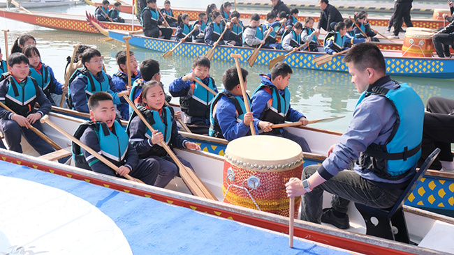 同時,甌海鼓勵學校將常規課、拓展課、社團課、課后服務、課外實踐活動等進行一體化設計實施。在溫州高鐵新城實驗學校的“龍舟競渡”自制小船比賽現場,校長黃建剛正坐在五年級學生陳軼晟和同學們用廢舊材料制作的“龍舟”里,奮力向前劃行。“劃得再快一些,千萬不要沉下去……”陳軼晟緊盯著操場上的水池默念著。這條融合科學與美術知識制作的龍舟,是該校開展跨學科主題學習的成果之一。“突破學科邊界,激發學生解決問題的熱情與跨界思維,培養學生的創新精神。”小學部副校長王蓉表示,接下來,學校還將持續開發更多融合學科與生活的主題學習項目,促進學生對知識的理解與內化。