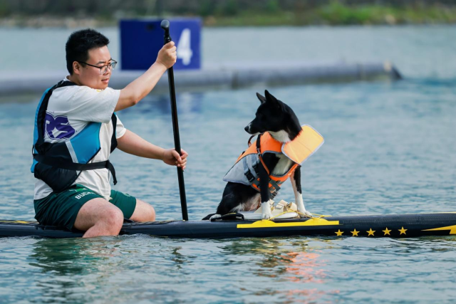 更引人注目的是這里的寵物槳板活動(dòng)。只見(jiàn)主人帶著自家的“毛孩子”在槳板上劃行,不怕水的寵物甚至能在水中暢游嬉戲。“在社交平臺(tái)上看到別人帶著寵物玩槳板,覺(jué)得特別有意思,就想帶我家狗狗也來(lái)體驗(yàn)一下水上樂(lè)趣。”一位現(xiàn)場(chǎng)參與者笑著分享道。