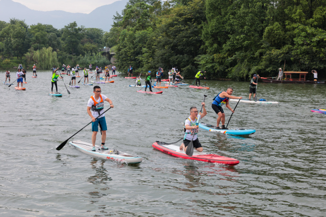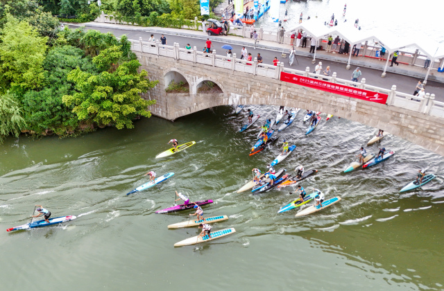 槳板運(yùn)動(dòng)擁有很強(qiáng)的包容性。無(wú)需復(fù)雜技巧,初學(xué)者經(jīng)過(guò)簡(jiǎn)單指導(dǎo)即可平穩(wěn)滑行,站、坐、跪多種姿勢(shì)靈活可選,使其成為一項(xiàng)真正覆蓋全年齡段的親水活動(dòng)。“槳板門(mén)檻低,受眾非常廣,最小的7歲孩子就能參與,而且可玩性極高,既有考驗(yàn)速度的直道競(jìng)速,也有探索風(fēng)光的槳板旅游,兼具競(jìng)技和娛樂(lè)。”徐建禮介紹道。