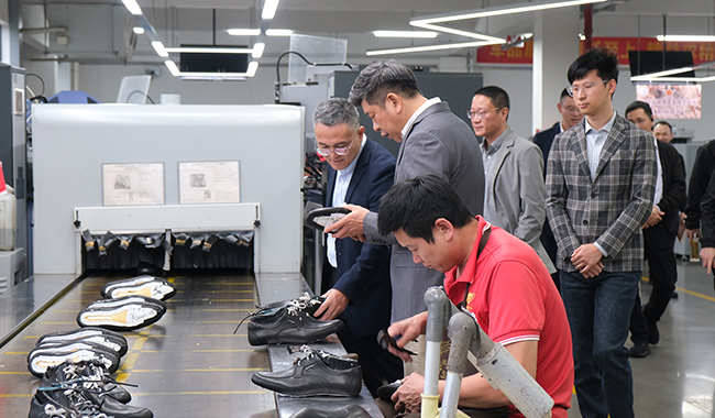 經過30余年發展,德賽集團有限公司已成為一家集自主研發、智能制造和多種銷售服務于一體的制鞋科技企業。劉云峰走進企業智能生產車間,了解企業產品生產、市場銷售等情況,并與企業負責人座談交流,傾聽企業需求。劉云峰勉勵企業更好發揮行業引領作用,向“新”而行、向“高”攀登,力爭取得更大發展成效,同時寄語新生代企業家練好內功、增強本領,勇當“創新先鋒”。他還叮囑屬地和部門進一步增強服務意識,為企業做大做強提供全方位服務保障。