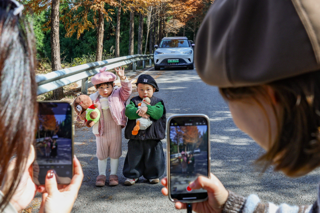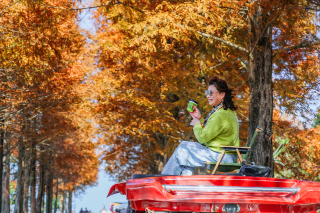 這條被譽(yù)為“溫州最美紅杉公路”的景觀,其水杉多為上世紀(jì)八九十年代栽種的行道樹,如今已成為一道亮麗的風(fēng)景線。最佳觀賞路段主要集中在陳北線、龍西線等區(qū)域,總計(jì)約22公里。赤橙黃綠的色彩與斑駁光影交織,宛如油畫。游客們愜意隨停,捕捉冬日的第一份浪漫,仿佛駛?cè)肓艘粋(gè)無需門票的天然影棚。