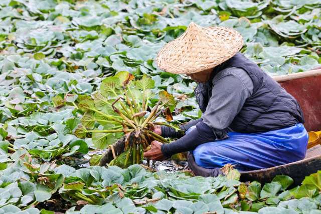 地處甌海的“城市綠肺”三垟濕地,是全國罕有的緊鄰大都市的河網圩田。濕地內水質清澈、土壤肥沃,造就了水稻、黃菱和甌柑共生千年的農業場景。清澈河水的滋養出的菱角粉糯甘甜,連甌柑也褪去了幾分傳統清苦。目前,三垟濕地有數百畝水稻田,“稻香小鎮”被游客稱為“打卡稻田最佳觀賞點”。濕地內的甌柑精品文化園,近年從300畝增至600畝,還劃分了有核甌柑生產基地、青皮甌柑生產基地、柑橘類優質品種試點區等區域,既保證了品種多樣性,又提升了景觀效果。而菱角田圍島而建,已成為秋季的一道風景,近距離還原了種菱、采菱的傳統耕作景象。前段時間,央視綜合頻道大型風物美食文旅節目《尋味山海》,聚焦濕地菱角的采收場景,將其視為溫州秋日風物的代表。
